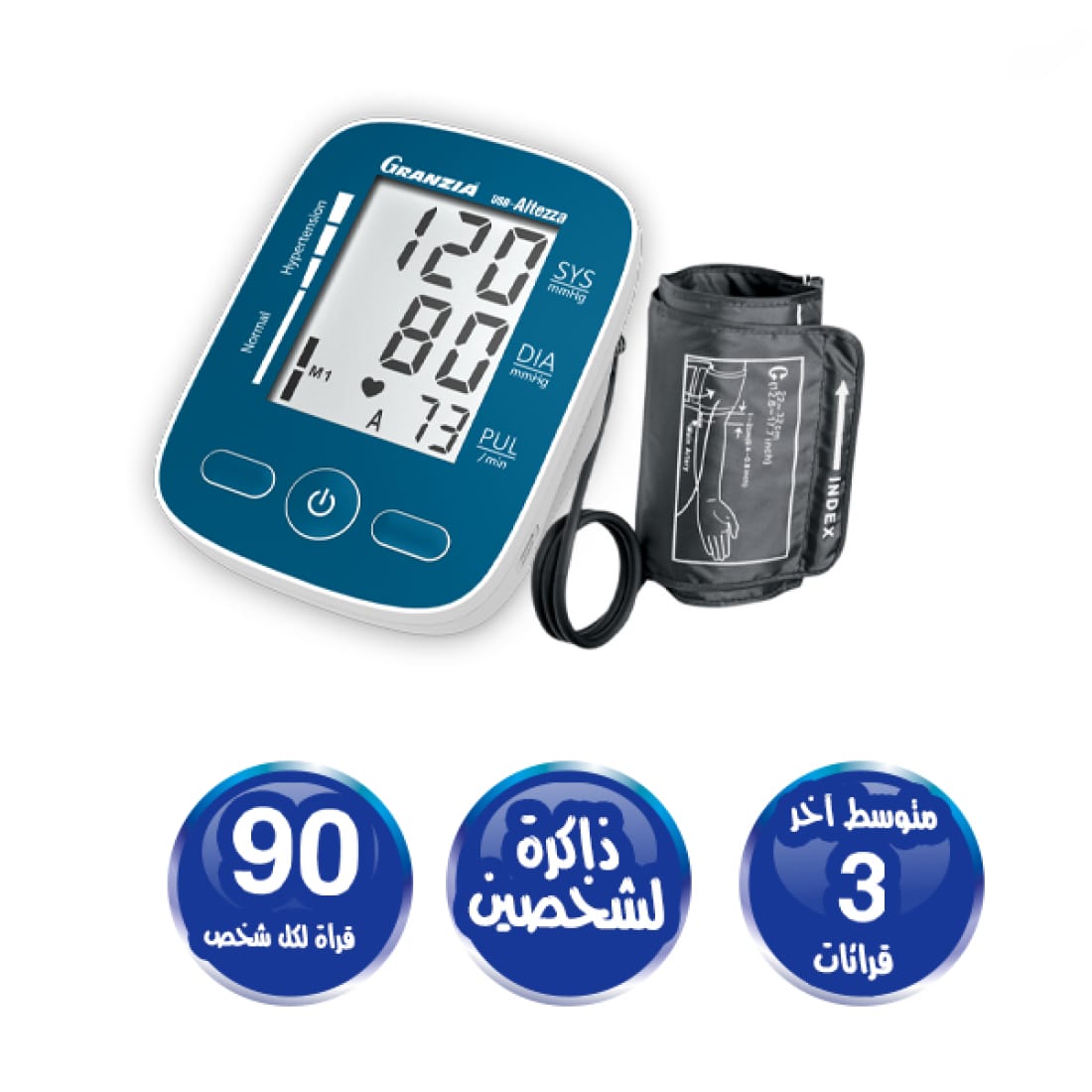 – يوفر سهولة الحمل والتخزين – يعمل بوصلة USB (متضمنة مع الجهاز) أو ببطاريات 4*AAA – شاشة كبيرة لسهولة القراءة – يحفظ قراءات ل 2 مستخدمين ويعطي متوسط آخر 3 قراءات – ذاكرة 180 قراءة (90 قراءة لكل مستخدم)